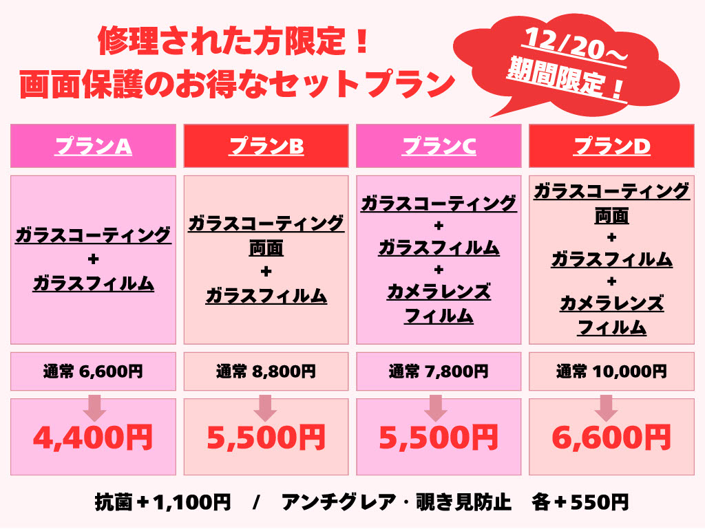 現在スマートクールでは、iPhone修理を行っていただいたお客様限定でお得なプランを提案中です!
