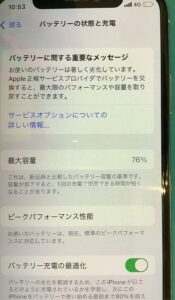 バッテリーの最大容量を確認してみると、「76%」になっていました。