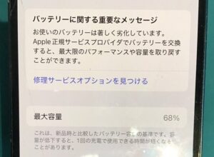 設定画面から確認してみると、最大容量が68%まで低下しておりました!