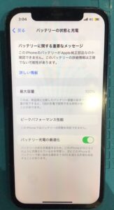 本日ご依頼いただきました修理内容は、iPhone12フロントパネル割れ、バッテリー劣化です!
