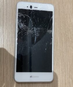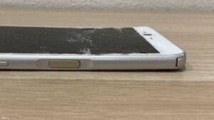 画面割れの影響で液晶がつかなくなっているのと、落下の衝撃が激しかったせいでスマホのフレーム自体が曲がっている状態でした