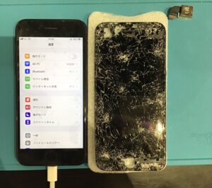 画面修理もこのようにバキバキの状態と比べて一目瞭然です!